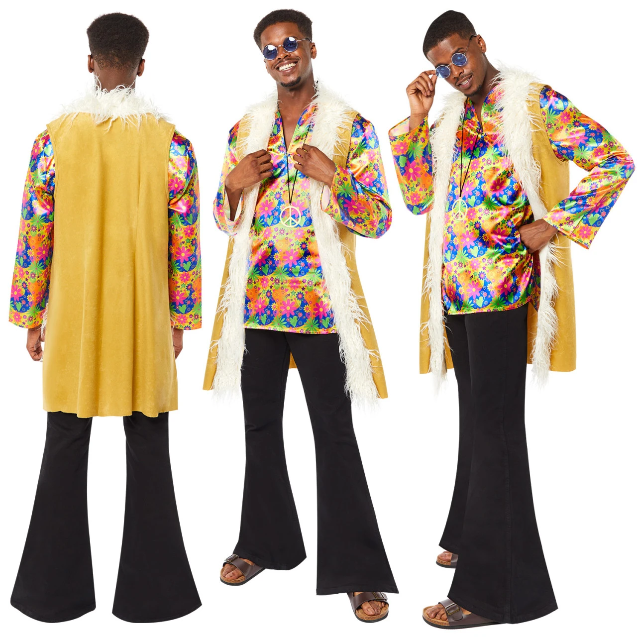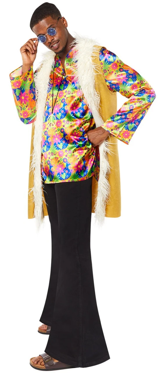 Pete, het hippie herenkostuum uit de jaren 70, fascineert met een kleurrijk overhemd en een stoer pluchen vest. Een geweldig kostuum voor foute hits feestjes, carnaval of themafeesten .