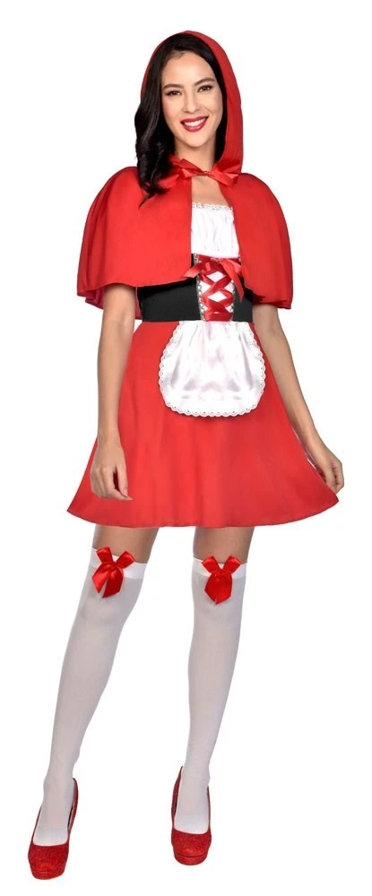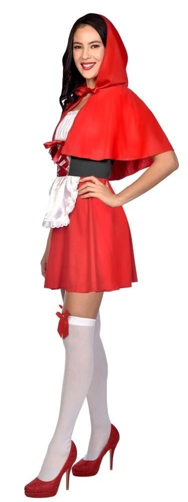 Ons betoverende Roodkapje dameskostuum is perfect om je favoriete heldin uit je kindertijd nieuw leven in te blazen. Het kostuum bestaat uit een jurk die indruk maakt met zijn schattige schortje en speelse veter. Ook inbegrepen is de rode cape, zonder welke Roodkapje nooit het huis zou verlaten. Om je kostuum te perfectioneren, raden we witte kousen met strikken en rode schoenen aan.
