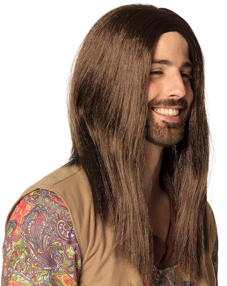 De bruine hippie lang haar pruik Fred verandert je in een absolute hippie. Het coole lange kapsel maakt van je kostuum een authentiek kostuum uit de jaren 60/70 . Bijna niemand zal je herkennen met deze haren. De bruine pruik steekt over je schouders en biedt veel meer opties voor mooie kostuums.