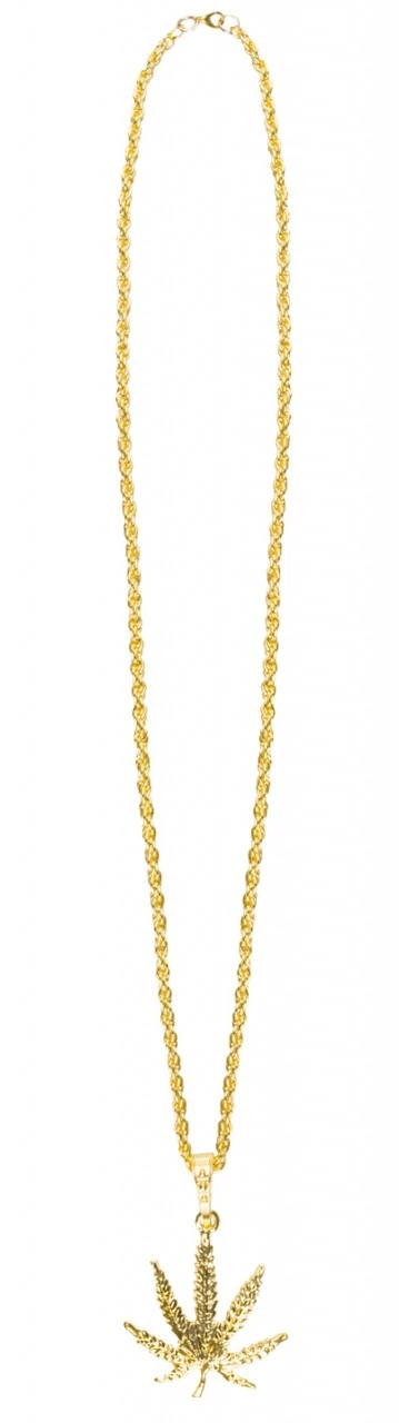 De gouden ketting met hippie hennep komt alsof je Rastafari of hippie kostuum de laatste hand mist. Dankzij het gouden ontwerp past het zich aan bijna elke outfit aan en pas bij een tweede blik is de grappige boodschap erachter duidelijk. Ideaal voor carnaval , feesten uit de jaren 60 en meer!