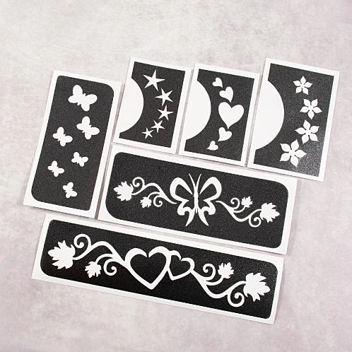 In de glitterttatoosjablonen set zitten 6 glittertattoo sjablonen.