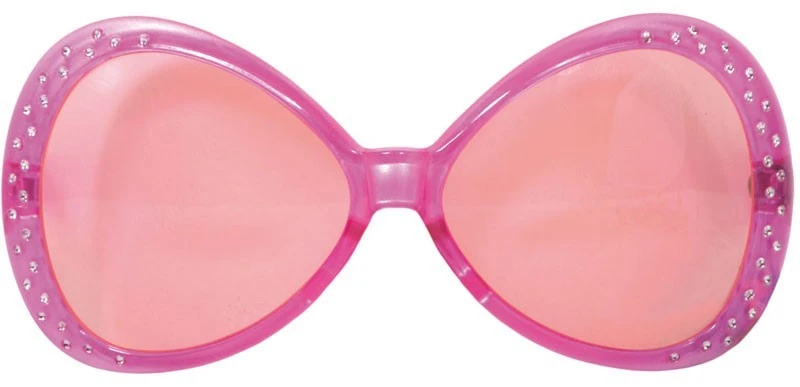 Eens echt de diva eruit laten! Dit werkt vooral goed wanneer het gezicht is vermomd in roze met de Jewel party-bril. De opvallende, grote bril in het retro-ontwerp is aan de zijkanten bedekt met veel kleine steentjes.