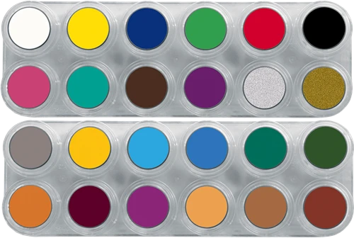 Grimas Water Make-up Pure Palet is waterschmink. De waterschmink van Grimas is een ongeparfumeerde en glutenvrije water make-up, bedoeld voor gezichts- en lichaamsbeschildering. De waterschmink bevat geen chemische conserveermiddelen (zoals bijvoorbeeld parabenen) of halogeen organische verbindingen. Water Make-up werkt net als waterverf. De kleuren zijn onderling mengbaar.