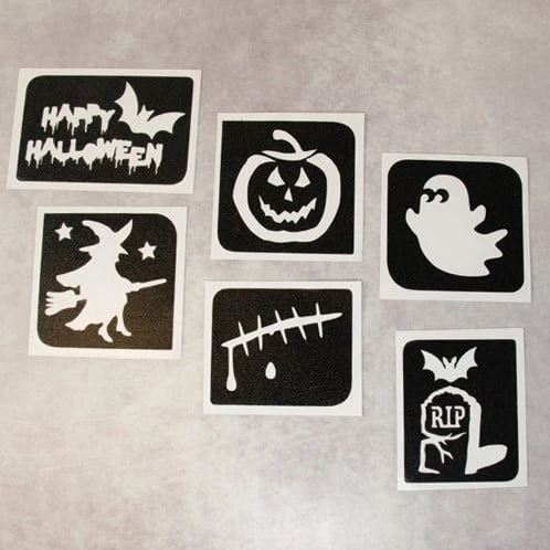 Met deze Halloween glittertattoo sjablonen maak je heel eenvoudig een leuke glittertatoeages.