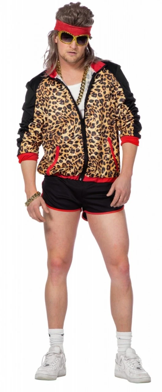 Met dit kleurrijke jaren 80 luipaard herenkostuum laat je alle andere feestgangers er stom uitzien. Met het coole luipaardpatroon ben je de blikvanger op het volgende themafeest of carnaval .