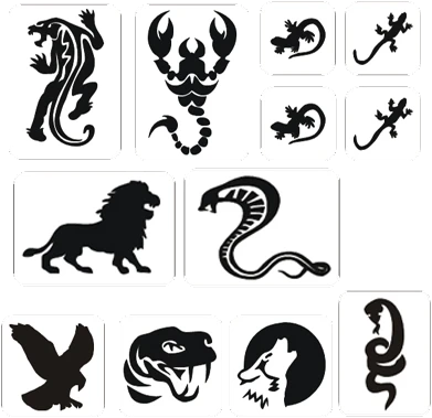 In de glitterttatoosjablonen set zitten 12 glittertattoo sjablonen.