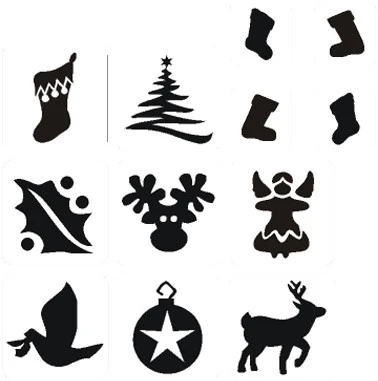 Met deze kerst glittertattoo sjablonen maakt u heel eenvoudig een leuke glittertatoeage in het kerst thema.