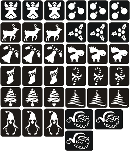 In de Kerst glitterttatoosjablonen set zitten 36 sjablonen.