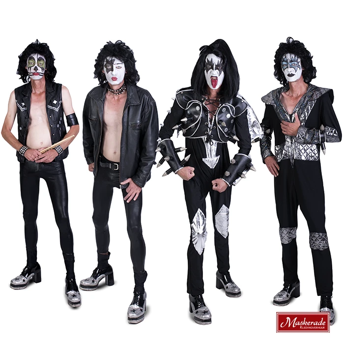 KISS: Dit gaat om de huur van alle vier de KISS kostuums. De prijs is dus een totaalbedrag van vier kostuums. Hier vind je de afzonderlijke art.nrs. en wat er allemaal bij zit: