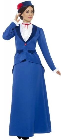 Met het Nanny dameskostuum in blauw wordt u een adellijke dame! Deze elegante outfit met een lange rok ziet er niet alleen geweldig uit, maar geeft je ook de ernst die je als nanny nodig hebt. Een geweldig kostuum voor alle Mary Poppins fans.