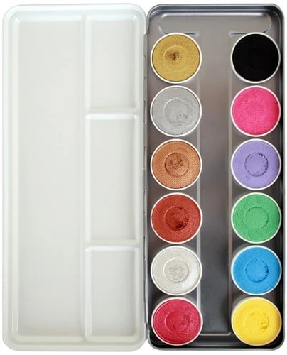 Superstar Schminkpallete Shimmer en Pastel bevat 12 kleuren een zeer gebruiksvriendelijke waterschmink van hoge kwaliteit en voldoet aan alle strenge eisen van de Europese Cosmetica Wetgeving (1223/2009/EG).