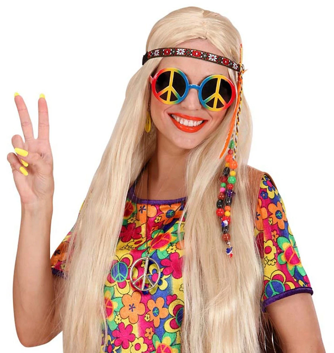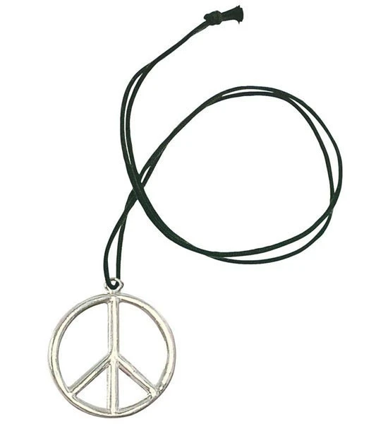 Vrede, Liefde en Harmonie! Deze geweldige hippie peace sign halsketting is een perfect accessoire voor elk goed jaren ’60 en ’70 kostuum. Het is een mooie manier om een vleugje klasse aan je hippie kostuum toe te voegen. De glanzend zilveren hanger is bevestigd aan een stevige band van stof, die individueel aan je eigen halsmaat aangepast kan worden. Het peace teken past bij elk flower power kostuum en geeft de finishing touch.