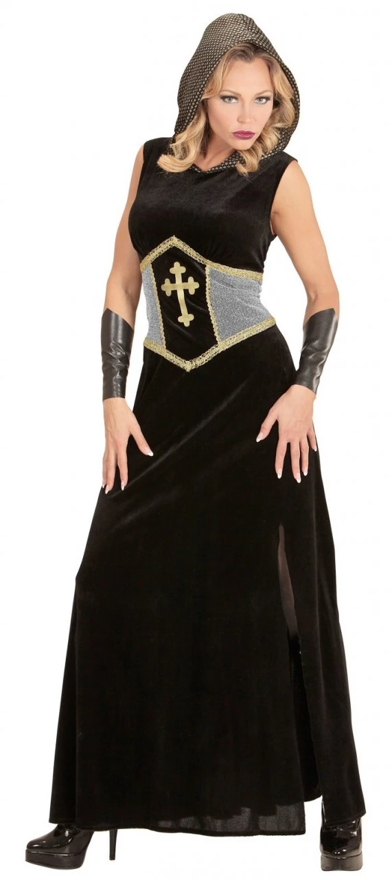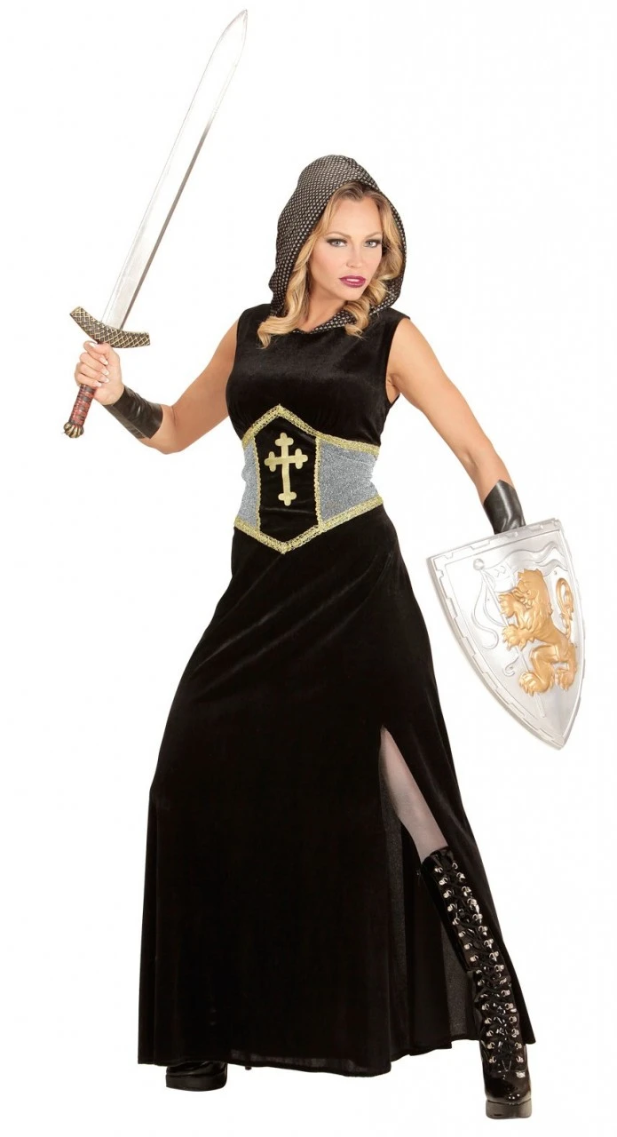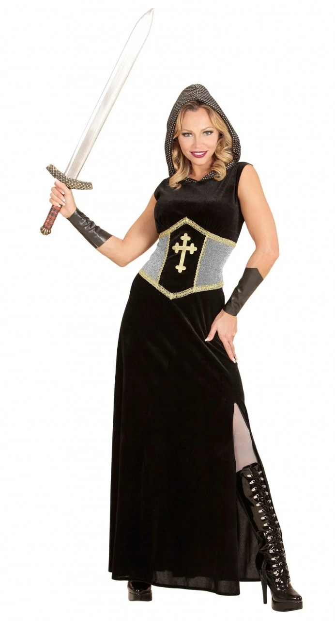 In Knight lady melodie Royal kostuum voor vrouwen, bent u verzekerd van een eye-catcher op het volgende deel y. Het bestaat uit een jurk met een capuchon en armwarmers en overtuigt met zijn lange snit en fluweelachtige look. De gouden decoraties zetten subtiele hoogtepunten op de juiste plaatsen. Een geweldig kostuum voor middeleeuwse themafeesten en andere kostuumevenementen .