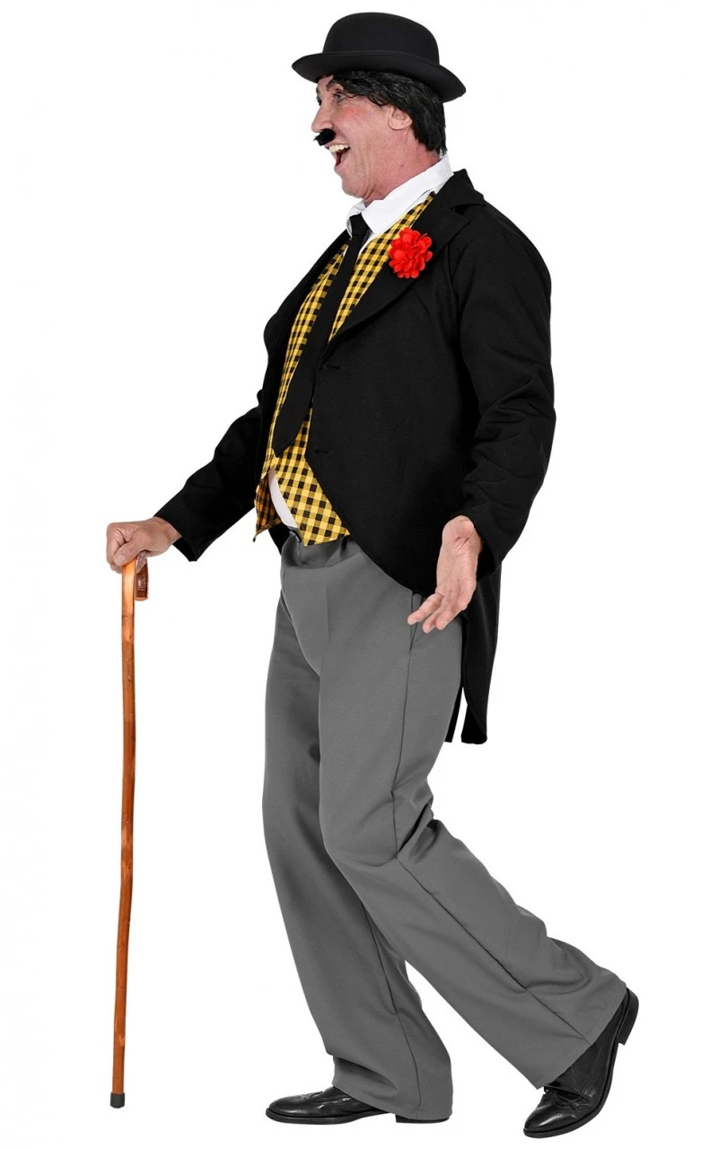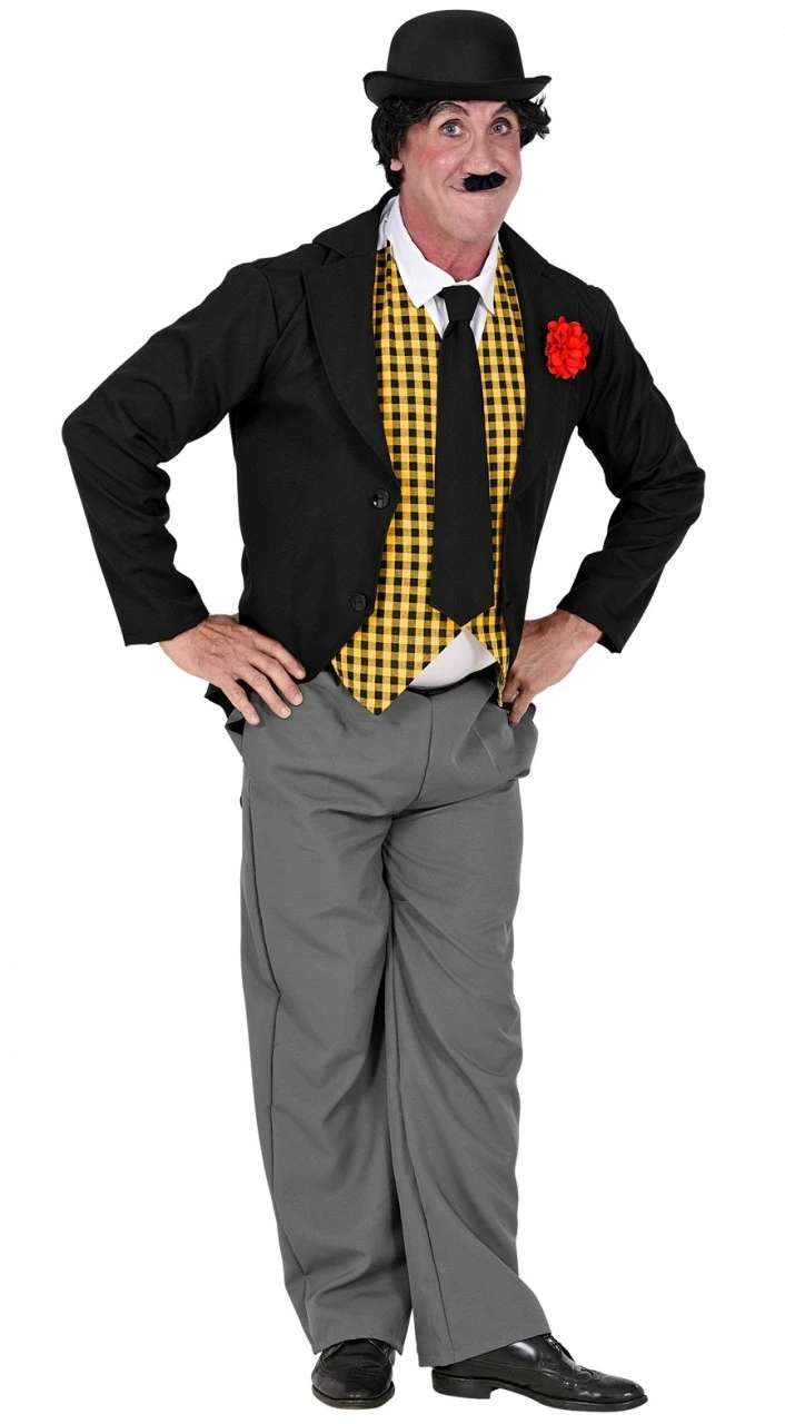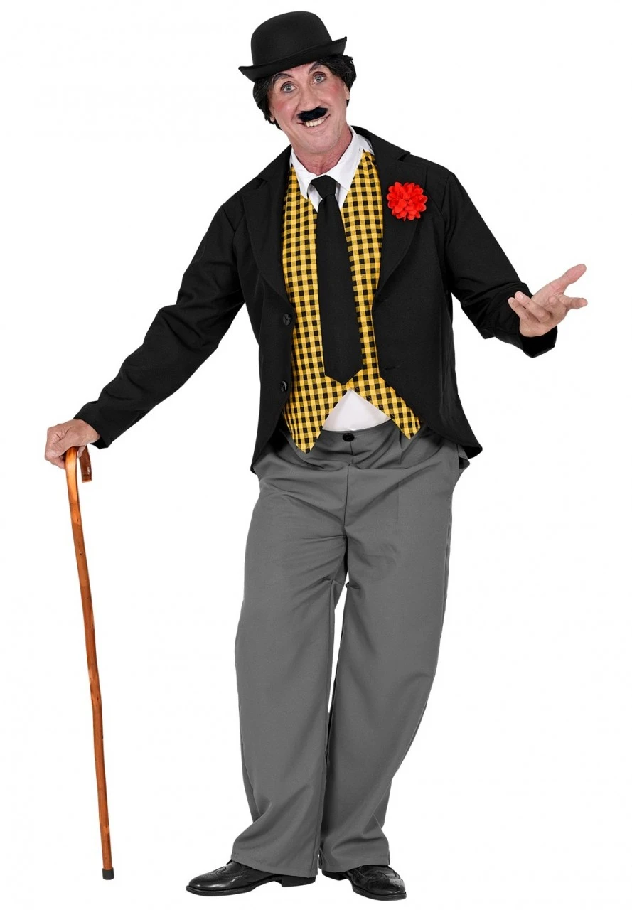 boom! Kruip in de huid van de bekende cabaretier in het herenkostuum van de stomme filmcomedian Charly. Het bestaat uit een gilet , de typische grijze broek en stropdas , en een overhemdinzetstuk.